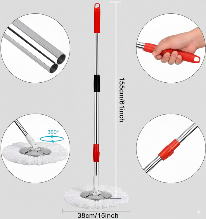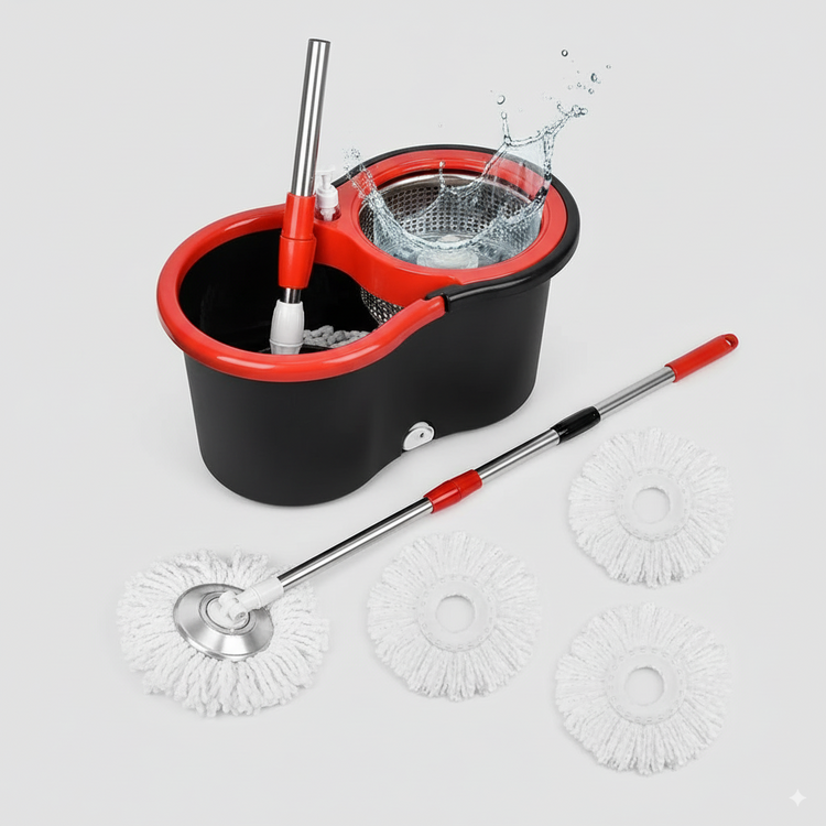 This spin mop set transformed my cleaning routine! The 360° head reaches every nook, and the stainless-steel wringer makes it so easy. My floors have never looked better.